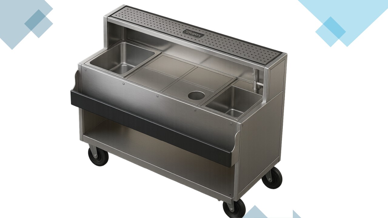 Edinstven mobilni šank za cocktaile omogoča barmanom in gostincem prijetno, učinkovito in nemoteno delo na terenu. Njegove glavne prednosti so: